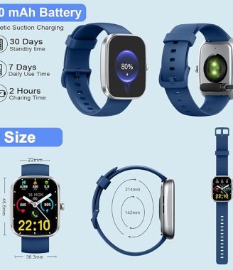 Smart Watch(Answer/Make Calls), 1.91″ Smartwatches for Men Women, Fitness Tracker with 110+ Sport Modes, IP68 Waterproof, Heart Rate/Sleep/Spo2 Monitor, Pedometer, Activity Tracker for Android iOS