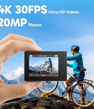 • Sale! AKASO Brave 4 Action Camera 4K 30fps with 64GB MicroSD U3 Card Bicycle Helmet Accessories Kit Bundle, 20MP Ultra HD 131FT Waterproof Underwater Camera EIS WiFi Remote Control 5X Zoom Sport Cameras