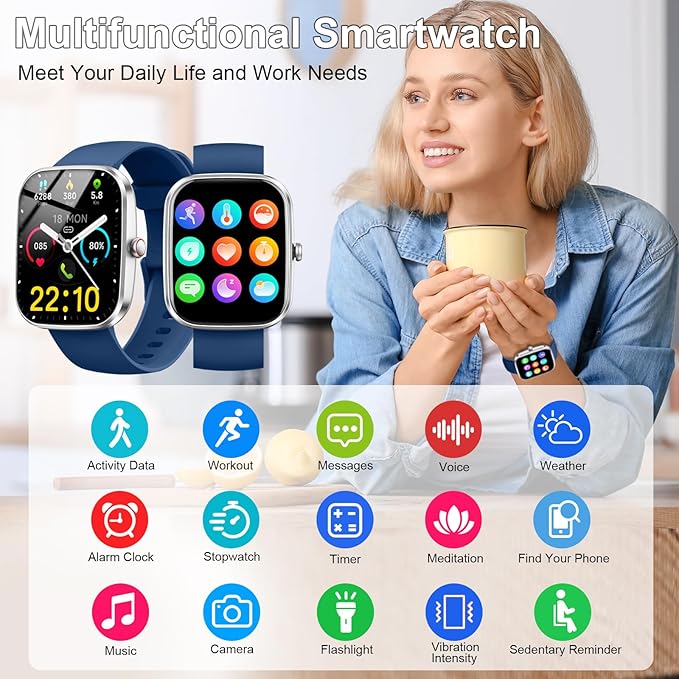 - Bluetooth Call and Message Alerts: Smart watch is equipped with HD speaker, after connecting to your smartphone via bluetooth, you can answer or make calls, view call history and store contacts through directly use the smartwatch. The smartwatches also provides notifications of social media messages (WhatsApp, Twitter, Facebook, Instagram usw.) So that you will never miss any important information.