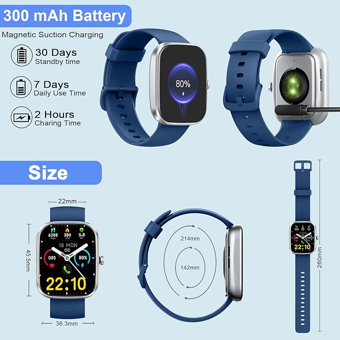 - Multifunction and Compatibility: This step counter watch also has many useful functions, such as weather forecast, music control, sedentary reminder, stopwatch, alarm clock, timer, track female cycle, screen light time, find phone etc. The smart watch with 2 hrs of charging, 5-7 days of normal use and about 30 days of standby time. This smart watches for women/man compatible with ios 9.0 and android 6.0 and above devices.